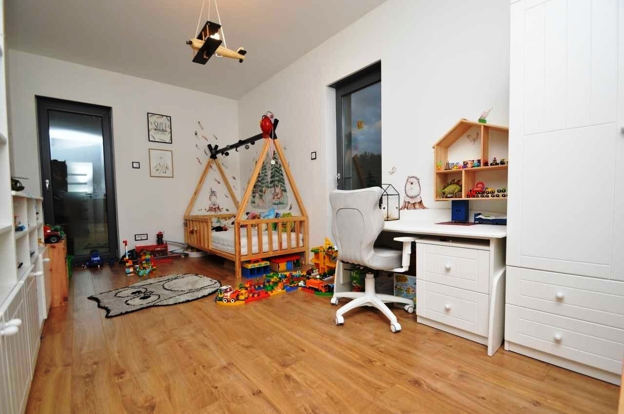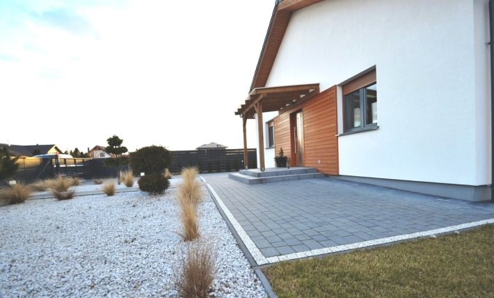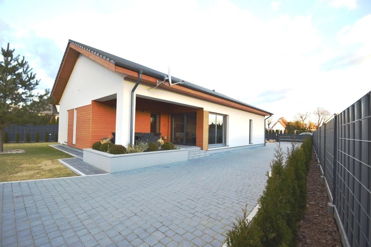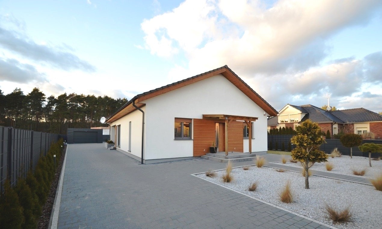 Dom parterowy z poddaszem nieużytkowym. Poddasze zostało wykończone tak aby mogło służyć jako czyste miejsce na przechowywanie rzeczy