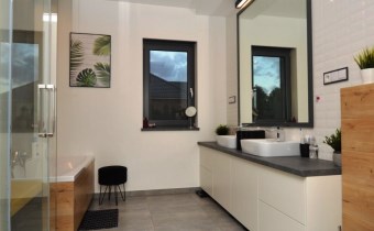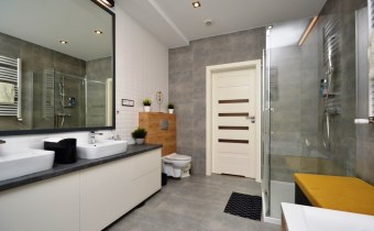 Łazienka o pow. 8,99m2 (wanna, prysznic, umywalka, toaleta, oświetlenie ledowe)