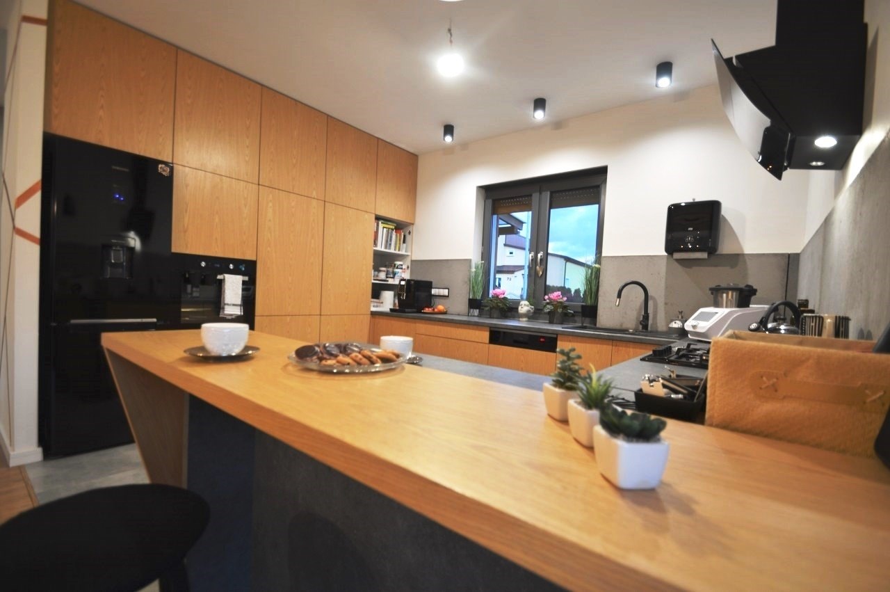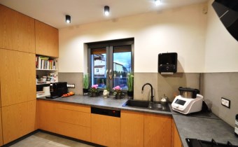 Aneks kuchenny o pow. 11,95m2 - zabudowa kuchenna wraz z sprzętem AGD (lodówko-zamrażarka wolnostojąca, płyta gazowa w zabudowie, piekarnik w zabudowie, pochłaniacz zapachów, zmywarka w zabudowie), okno od strony południowej