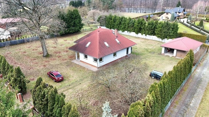 Na sprzedaż atrakcyjna nieruchomość – przestronny dom jednorodzinny z poddaszem użytkowym o powierzchni użytkowej 222,50 m², usytuowany na dużej, własnościowej działce o powierzchni 3008 m². Dom położony jest w wyjątkowo spokojnej okolicy, zaledwie 100 metrów od jeziora, z prywatnym dojściem do plaży.
