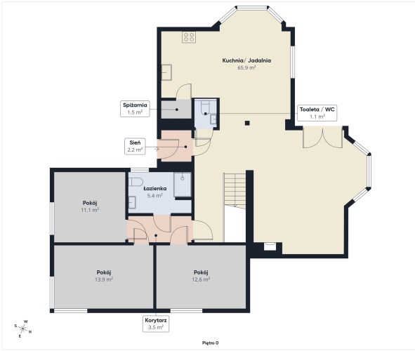 Pokój (4) – 30,2 m² (pow. przypodłogowa)