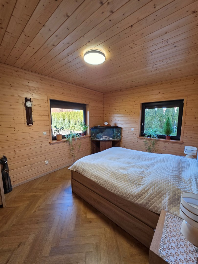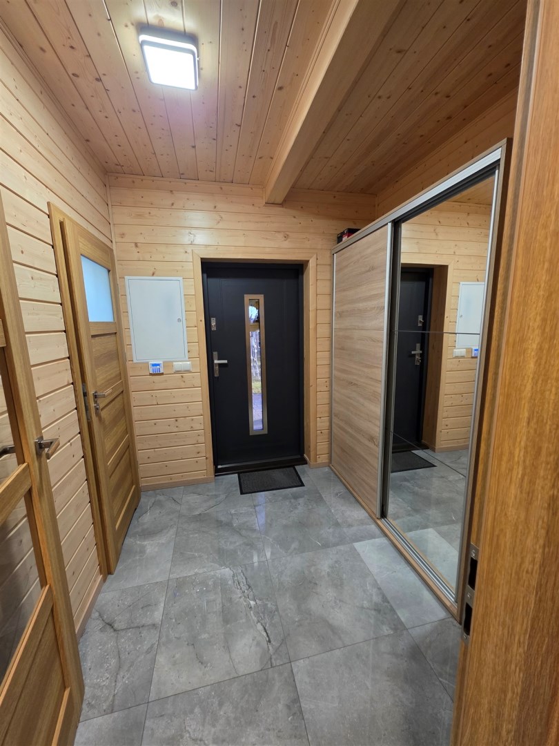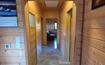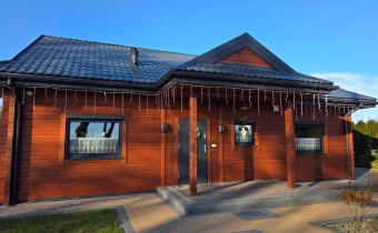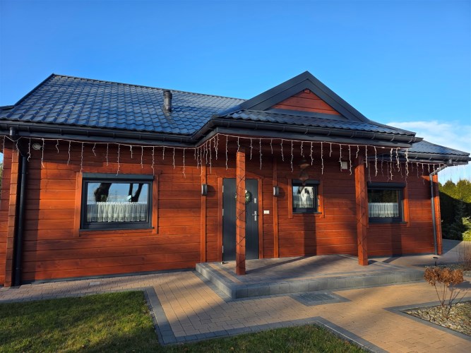 Dom wolnostojący o powierzchni 74,83 m², wybudowany i oddany do użytkowania w lutym 2023 roku, wykonany został z drewna świerku norweskiego (obrzynanego) – materiału trwałego, ekologicznego i prestiżowego.