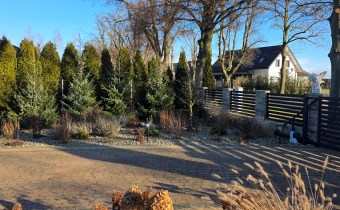 Pięknie zagospodarowana działka o powierzchni 1 358 m² stanowi spójną, reprezentacyjną całość z budynkami.