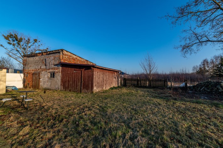 W skład oferty wchodzi działka gruntu o powierzchni 811m2 zabudowana budynkiem gospodarczym oraz domem mieszkalnym o powierzchni użytkowej ok. 71m2, a także 3 sąsiadujące działki o powierzchniach 2600m2, 800m2 i 700m2.