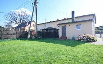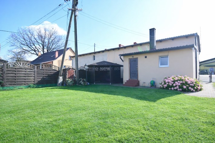 Dom posiada dach po remoncie. Wnętrza zostały odświeżone – ściany wykończone płytą gipsowo-kartonową i pomalowane, na podłogach znajdują się panele, a w budynku zamontowano okna PCV.
