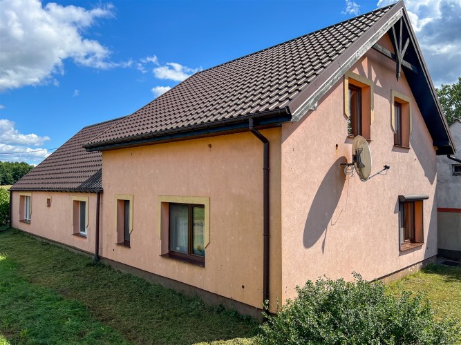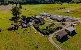 To kompletna nieruchomość – dom mieszkalny, nowa obora, magazyny, garaże, wiaty oraz baza paszowa.