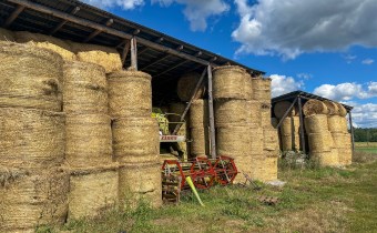 - 2 wiaty (po ok. 100 m²) – na kombajn i zapas balotów