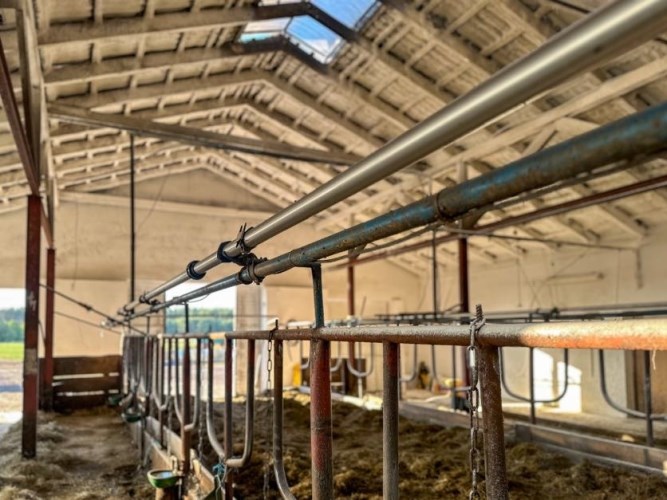 - Nowa obora (438 m²) – 42 stanowiska dla krów mlecznych oraz miejsce dla cieląt, paszociąg centralny, żłoby po obu stronach, płyta obornikowa 137,61 m2 zbiornik na gnojówkę poj. 110 m³, wydzielona przechowalnia mleka 13,04 m²; dzienna produkcja ok. 700 l