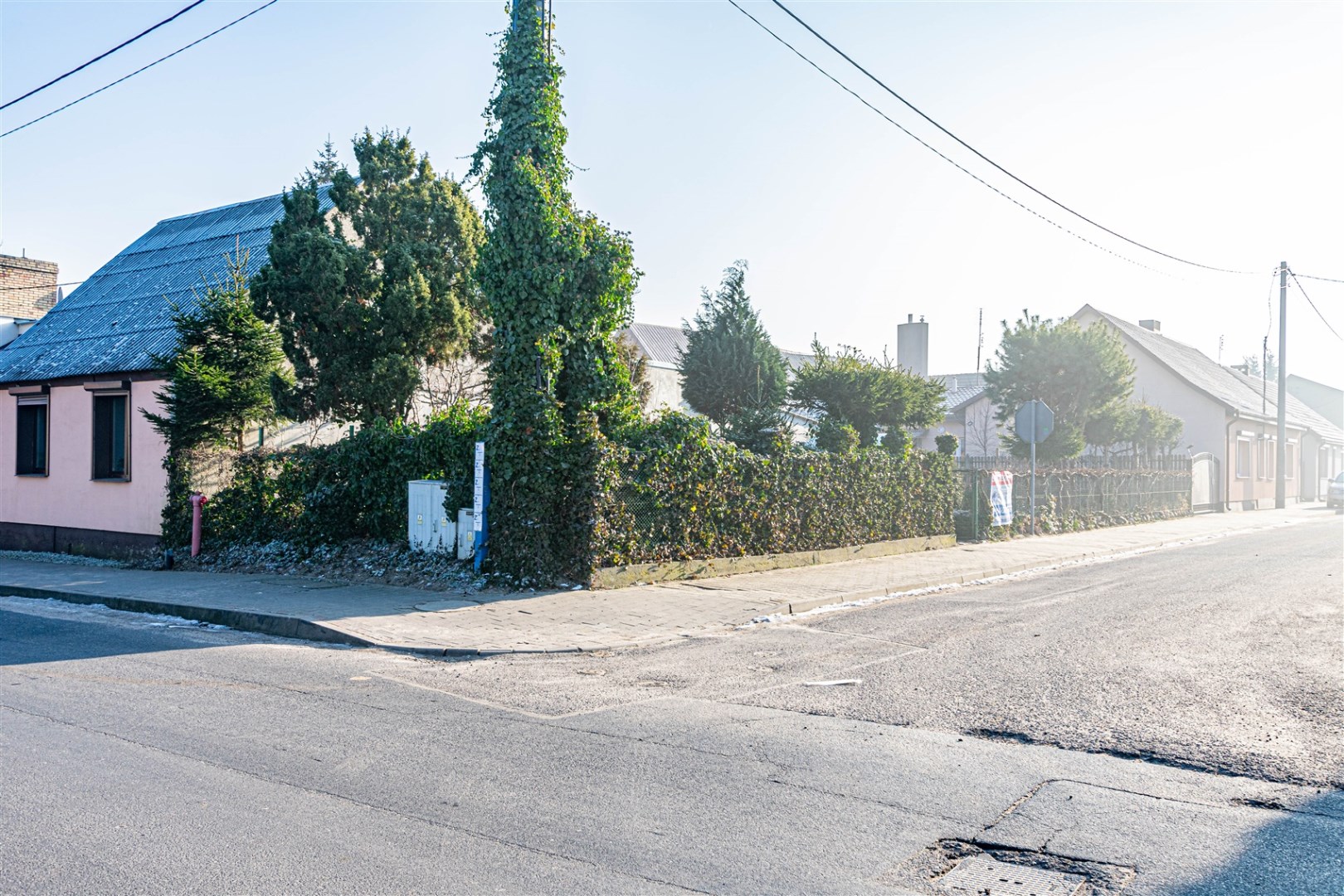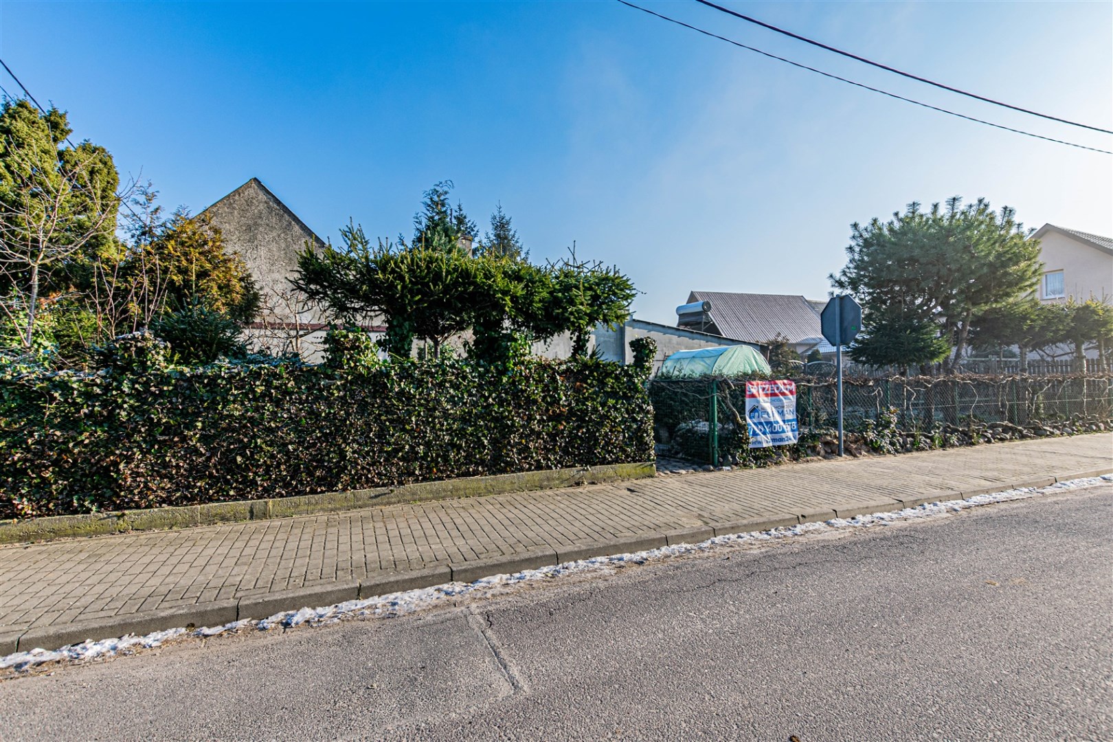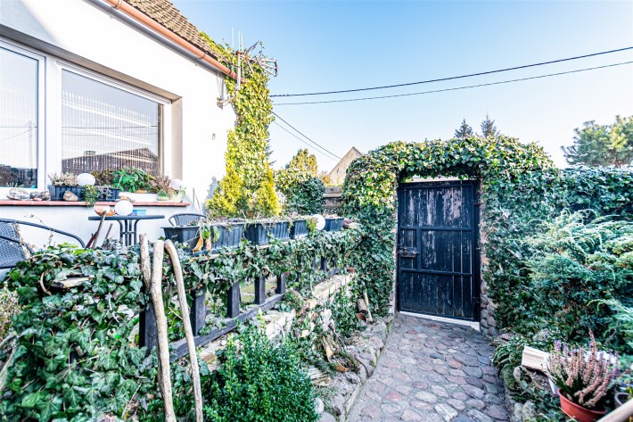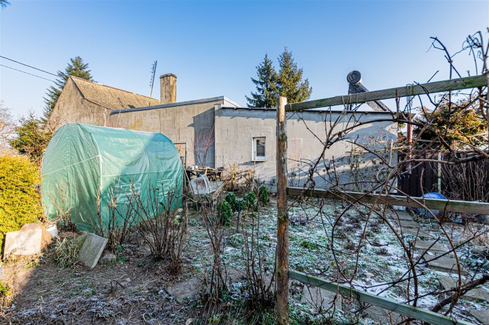 Nieruchomość ogrodzona. Wejście do domu od tyłu budynku.