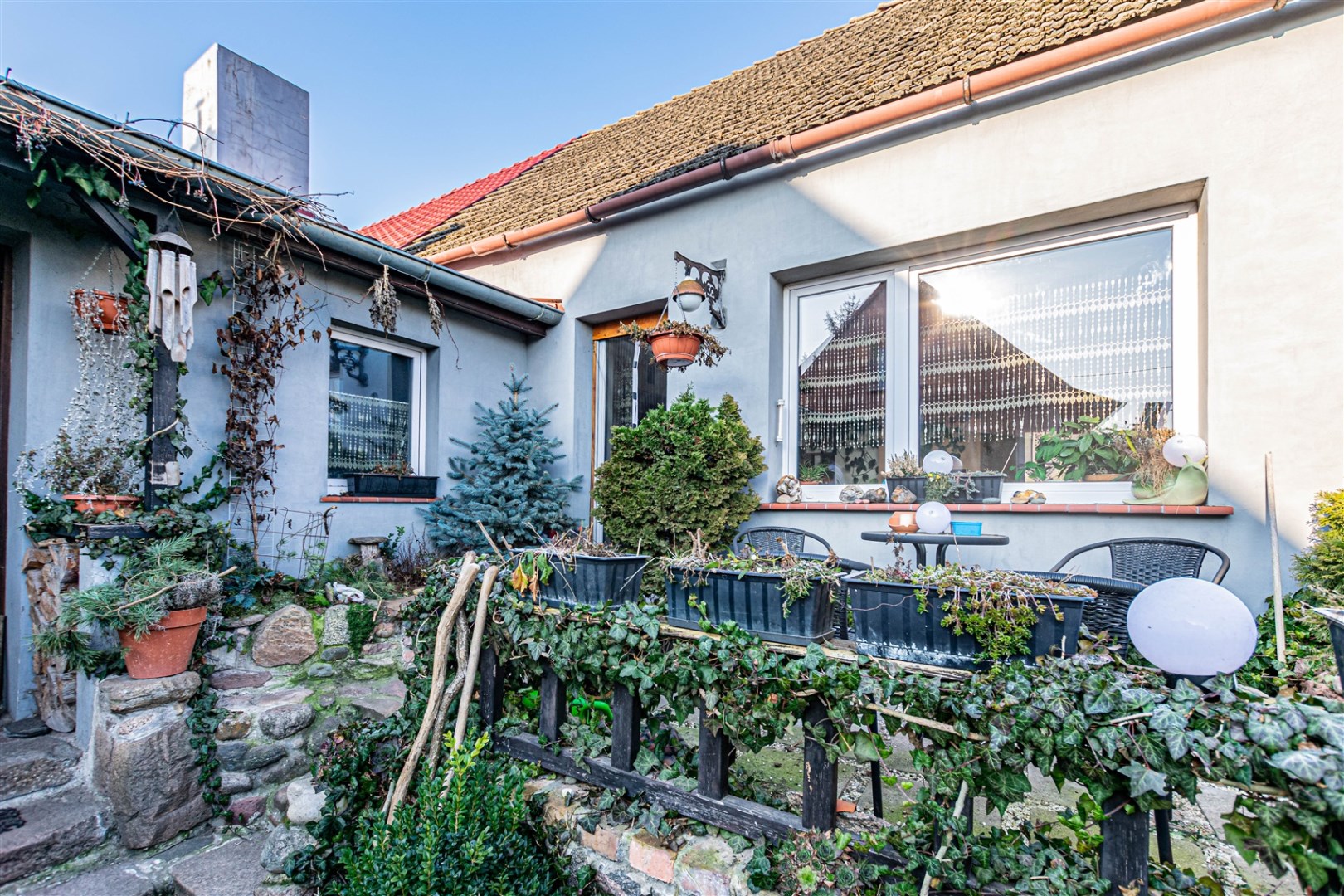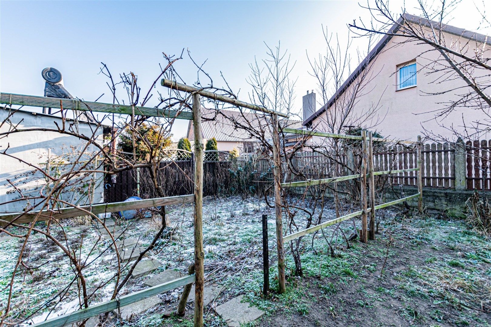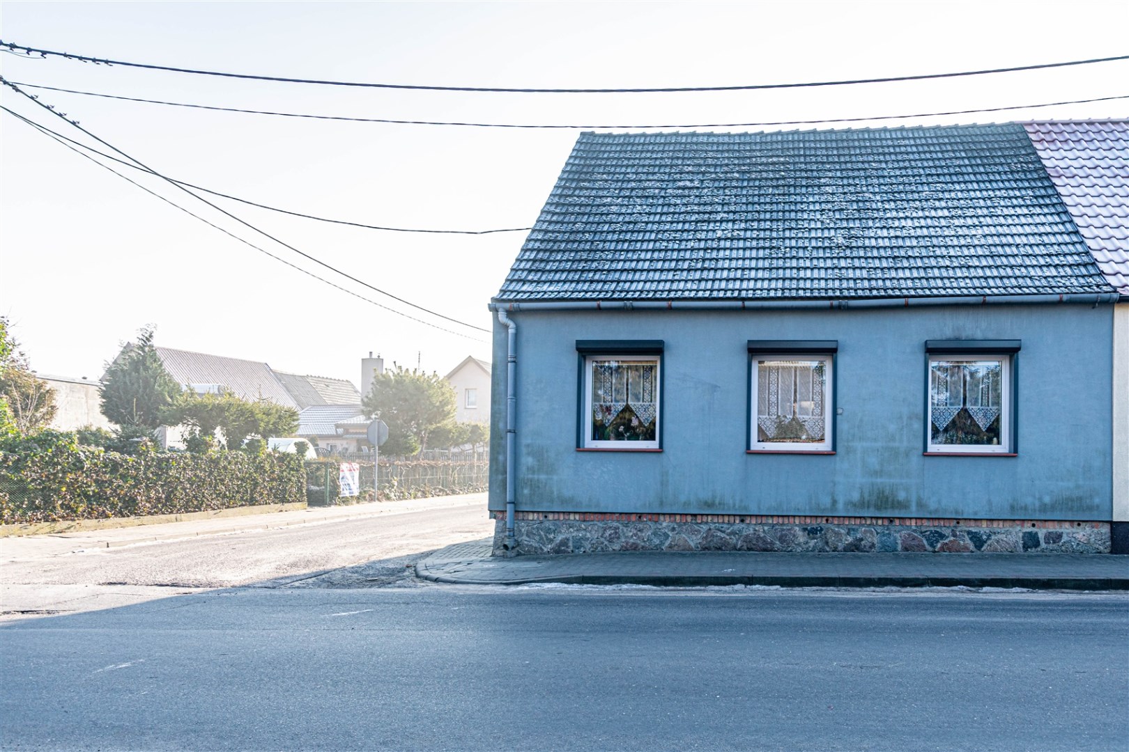 Nieruchomość ogrodzona. Wejście do domu od tyłu budynku.