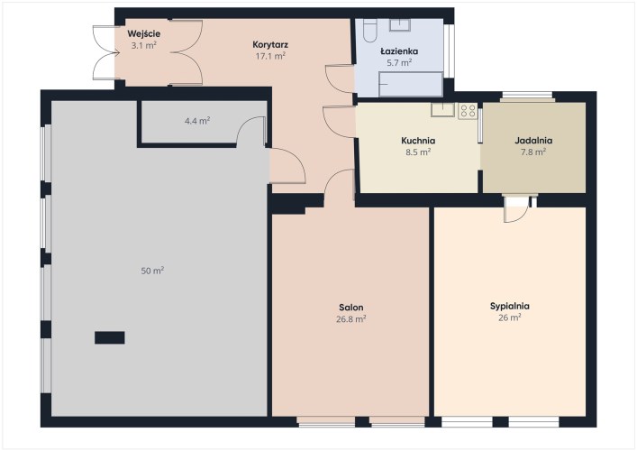Powierzchnia użytkowa domu to 95 m² , do zagospodarowania na potrzeby mieszkalne lub działalności gospodarczej powierzchnia ok. 55 m2, które łącznie tworzą powierzchnię ok. 150 m2. Powierzchnia działki do użytku własnego to 452 m², ale przestrzeń na zewnątrz z której można korzystać jest zdecydowanie większa.
