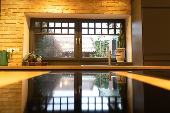 Wyjątkowa kuchnia z jadalnią. W tej kuchni gotowanie staje się przyjemnością a nie codzienną koniecznością. Kuchnia wyposażona w piękną i funkcjonalną wyspę. Zabudowa kuchenna ze wszystkim niezbędnymi sprzętami i wieloma miejscami do przechowywania, Kącik jadalniany z pięknym widokiem na ogród i wyjściem na taras
