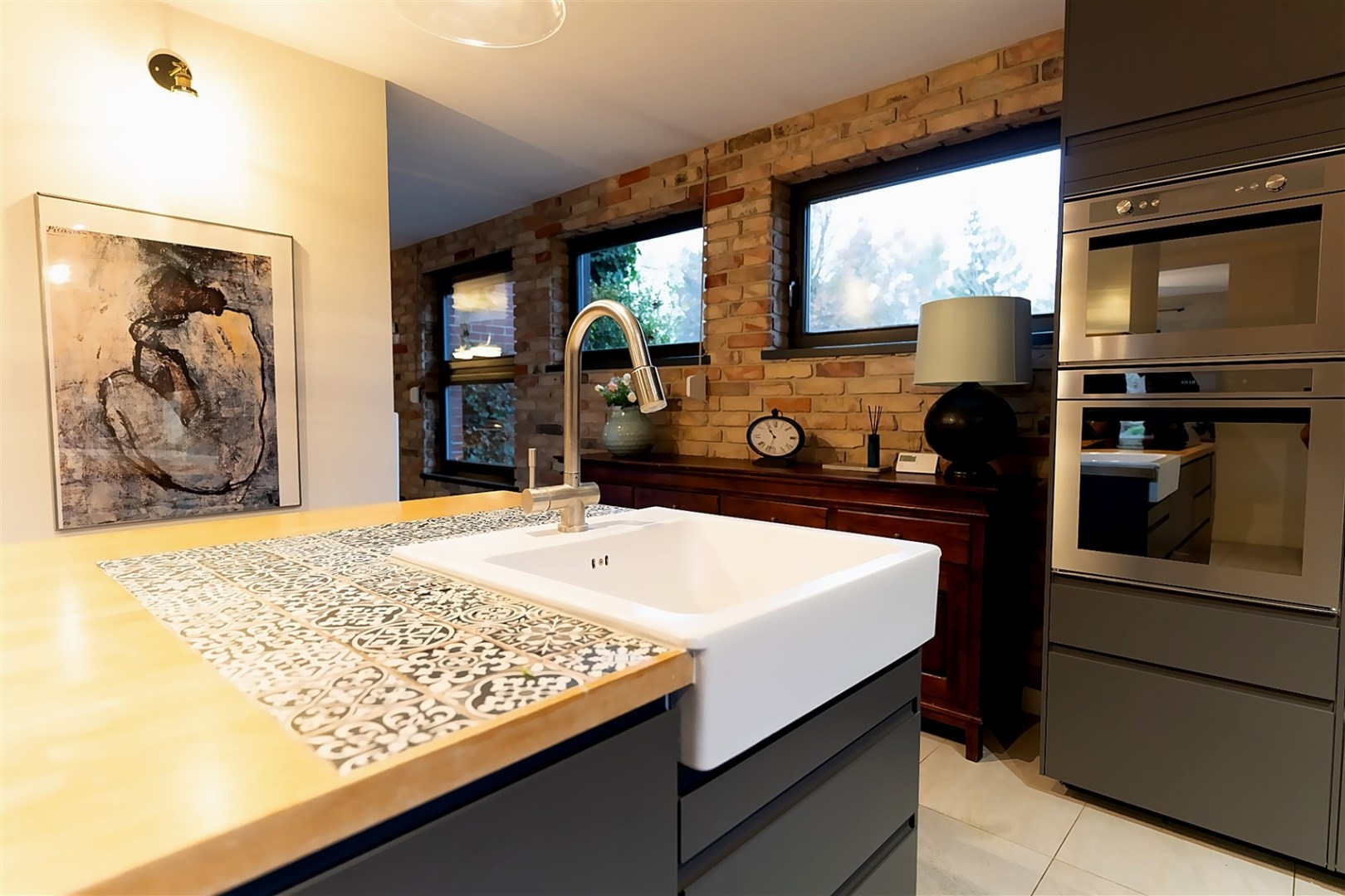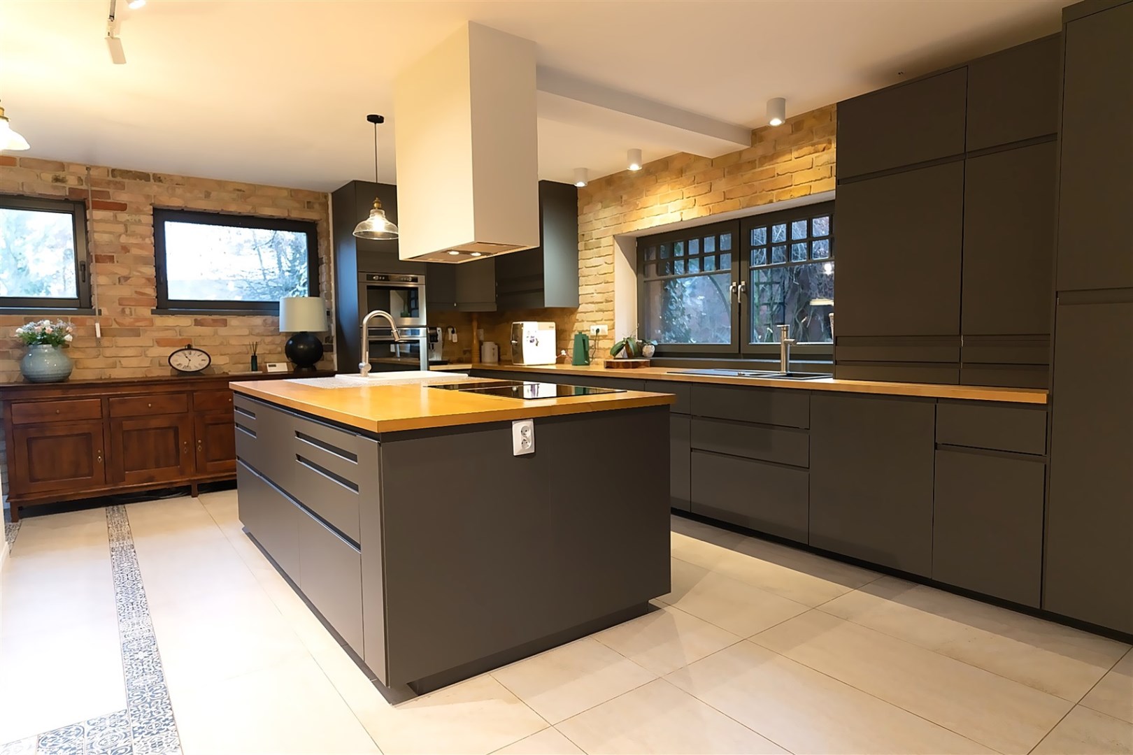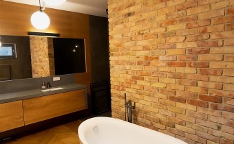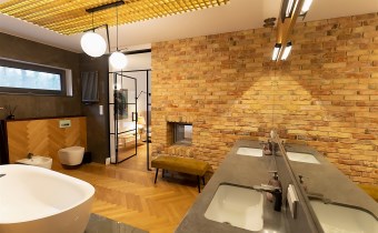 Wnętrza urzekają połączeniem naturalnych materiałów, prostych form i ciepłej kolorystyki. Elementy drewniane, ceglane ściany i miękkie światło tworzą przytulny stylowy klimat.