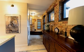 Nowoczesna stolarka okienna w całym domu, rolety sterowane elektrycznie. Ściany gipsowane, malowane, częściowo wykończone oryginalną cegłą. Na podłogach deska drewniana wysokiej jakości oraz glazura. Na działce garaż o pow. ok. 50 m2 oraz wiata.