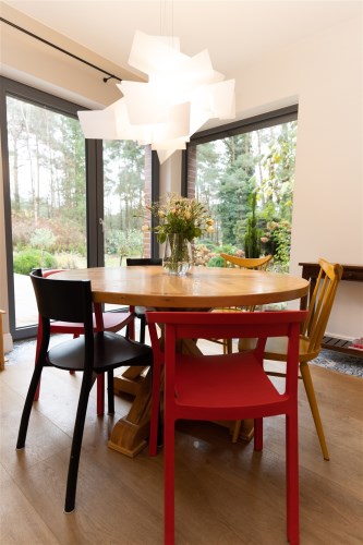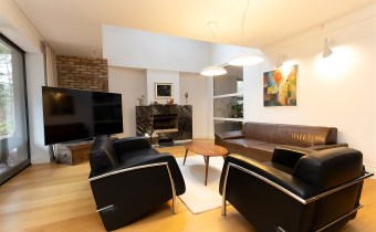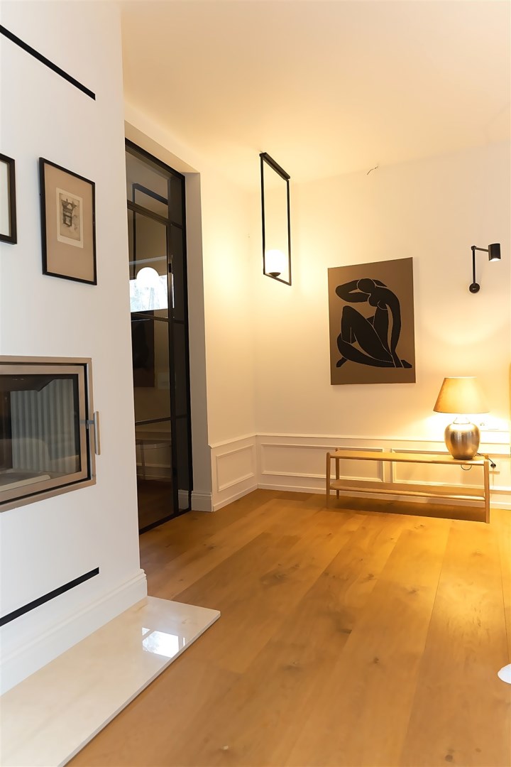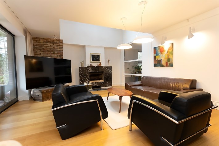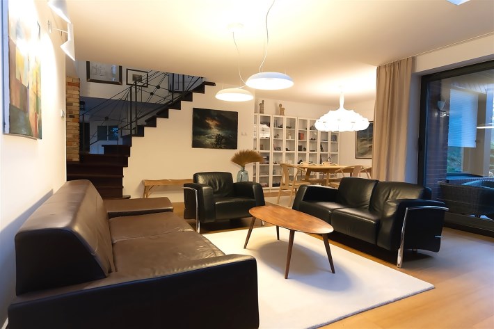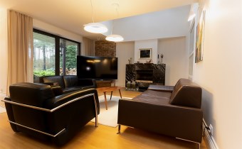 Na parterze o przemyślanym, funkcjonalnym układzie od wejścia wita przestronny salon z kominkiem, ciepły, przytulny i pełen charakteru. Salon z częścią jadalnianą. Salon stanowi serce domu – przestrzeń spotkań i odpoczynku. Z salony wyjścia na jeden z tarasów - idealne miejsce do spędzania wolnego czasu przy porannej kawie lub spotkań z bliskimi przy wspólnym posiłku