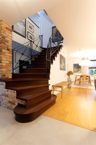 Piętro - na piętro prowadzą drewniane schody znajdujące się bezpośredni przy salonie