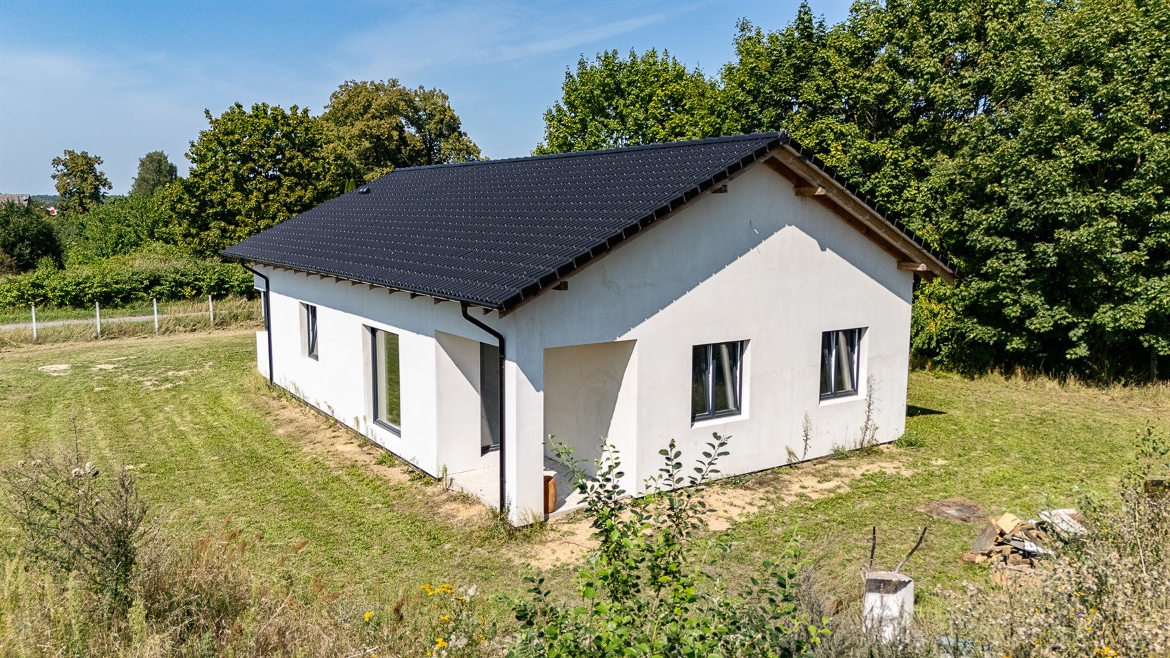 Na sprzedaż oferujemy dom jednorodzinny parterowy o powierzchni użytkowej 110,24 m² + garaż w bryle budynku 19,42 m², usytuowany na działce o powierzchni 1000 m² (własność).