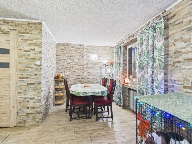 Oferujemy dom w zabudowie szeregowej wybudowany w 1971 roku, zlokalizowany w spokojnej okolicy. Nieruchomość przeszła remont w 2014 roku (m.in. panele podłogowe oraz odświeżenie ścian), co czyni ją gotową do zamieszkania z możliwością dalszej aranżacji według własnych potrzeb. Dom posiada dwa wejścia - frontowe od ul. Niepodległości oraz od tyłu działki gdzie znajduje się garaż od ul. Promienistej.