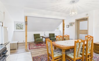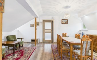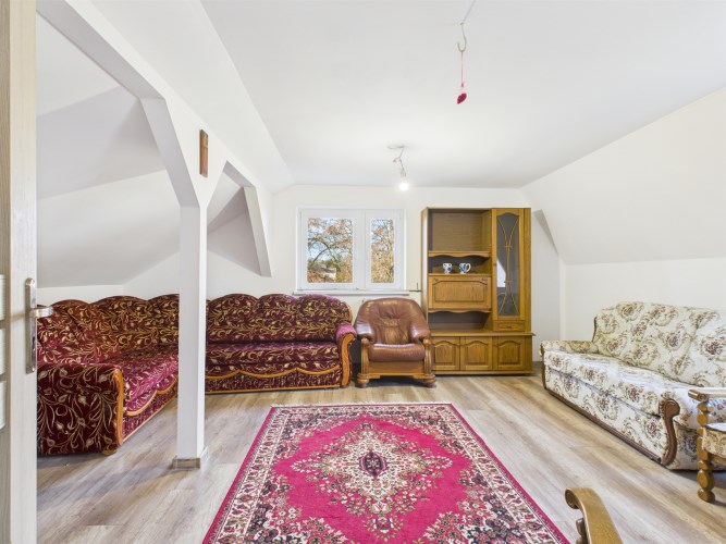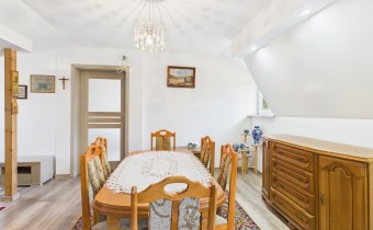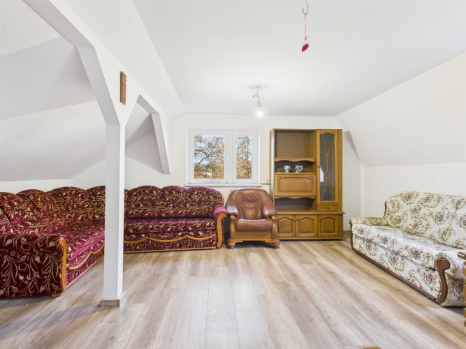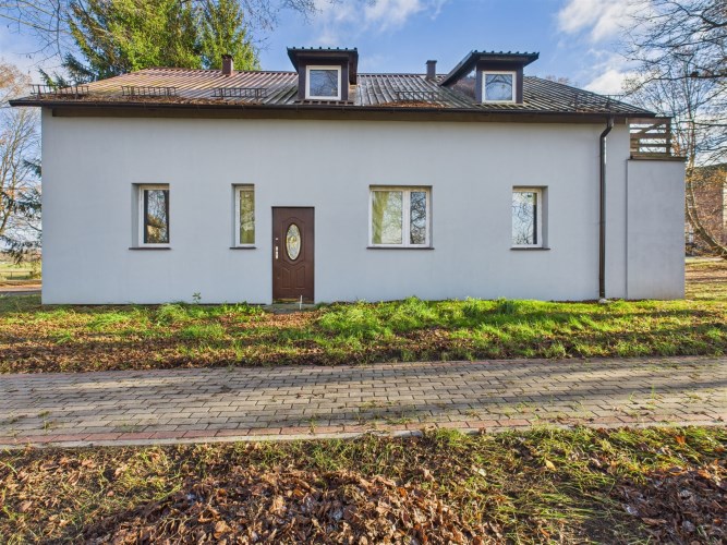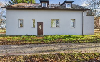 Przedmiotem oferty jest    działka  o pow. 411 m2 zabudowana domem  o funkcji mieszkalno - usługowej,  wolnostojącym dwukondygnacyjnym o pow. całkowitej ok. 139 m2, pow. użytkowej  ok. 128 m2.    Dom wybudowany metodą tradycyjną, murowany z cegły, ocieplony styropianem. Dach konstrukcji drewnianej kryty blachodachówką . Wymienione poszycie dachu rynny,  stolarka okienna  2 lata temu.  Na podłodze panele w aneksie kuchennym i łazience  terakota. Wymieniona   instalacja elektryczna i wodno-kanalizacyjna .  Dom ogrzewany grzejnikami elektrycznymi. Do tej pory służył  właścicielom  wyłącznie dla zaspokojenia  potrzeb rekreacyjnych.