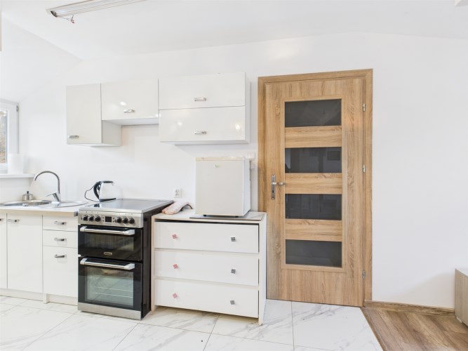 - Salon z aneksem kuchennym o pow. 27,8 m2