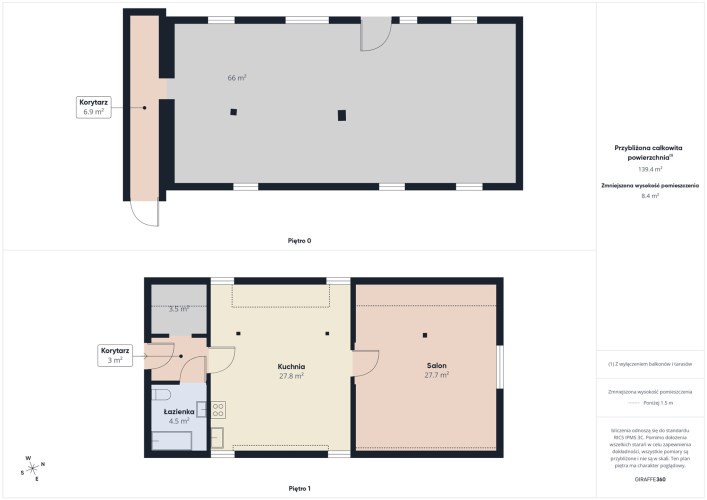 Powierzchnia pokoi 27,8 ; 27,7 m2
