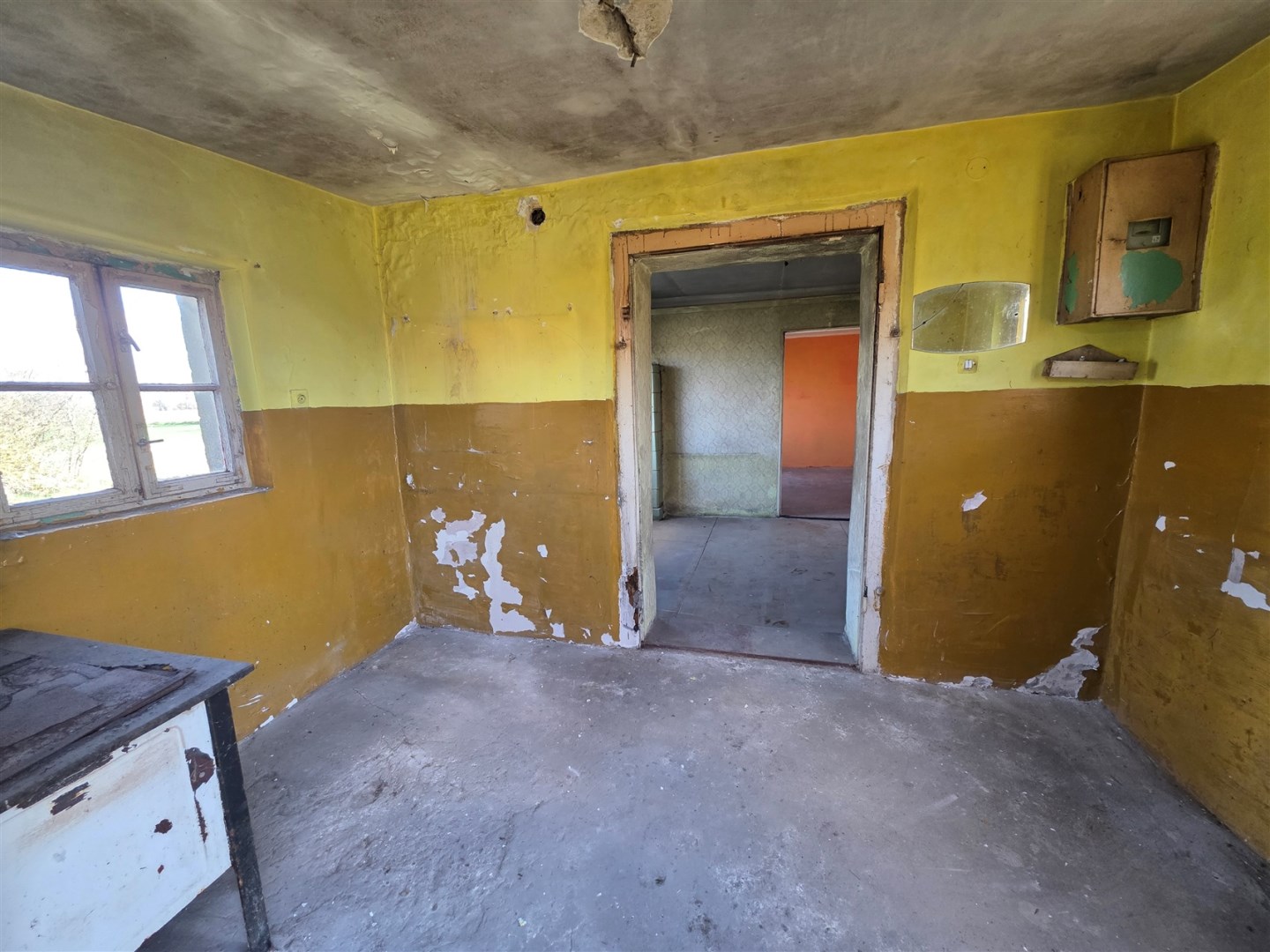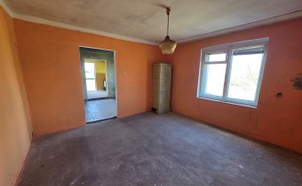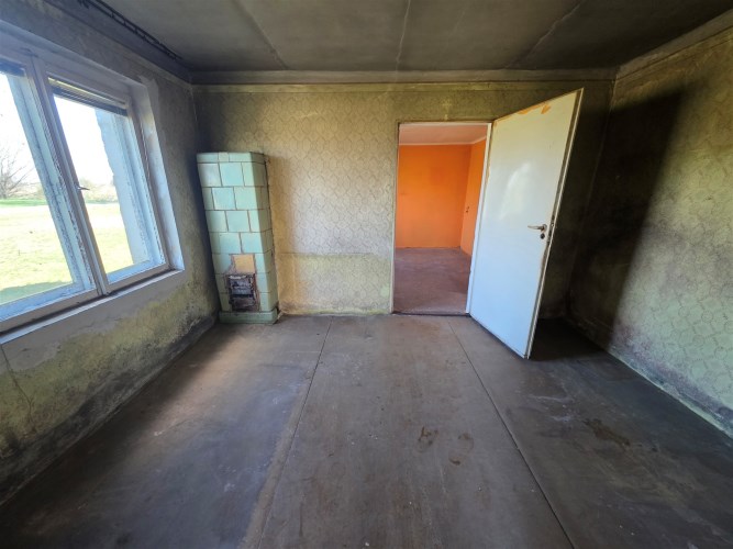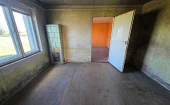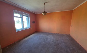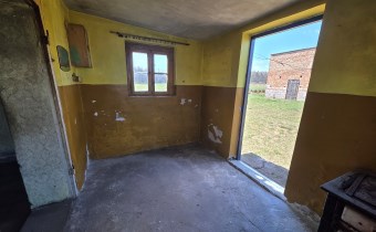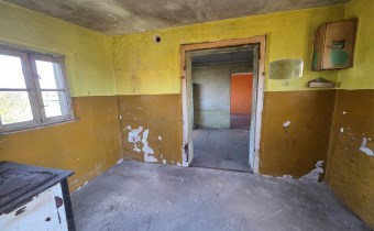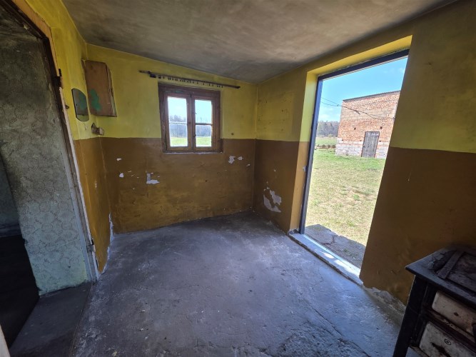 Budynek mieszkalny z lat 80-tych (połączony z gospodarczym), pow. zabudowy 44m2, użytkowa 36m2 :
