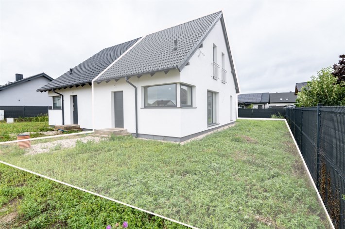 Budynek parterowy z użytkowym poddaszem, zbudowany w technologii tradycyjnej, na działce o powierzchni 466 m² (pełna własność).