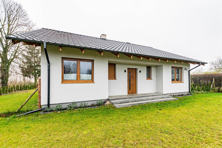 Budynek mieszkalny jednorodzinny, parterowy o powierzchni użytkowej 104,74 m2 usytuowany na działce o pow. 747 m2.