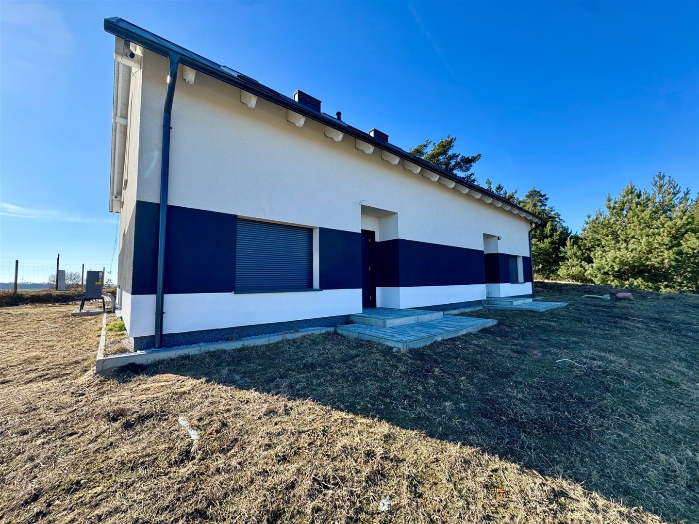 Budynek ocieplony został styropianem 20 cm, otynkowany.