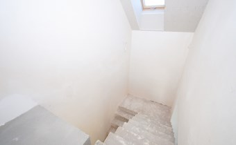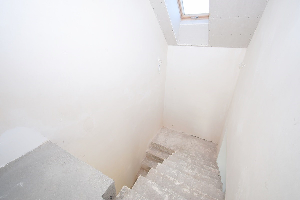 Schody wewnętrzne 2-biegowe, płytowe monolityczne. Klatka schodowa doświetlona światłem dziennym (okno dachowe)