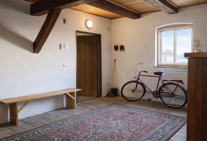 Część powierzchni piętra została już przygotowana do dalszego wykończenia, co umożliwia stopniową realizację inwestycji bez konieczności ponoszenia jednorazowo pełnych kosztów adaptacji.