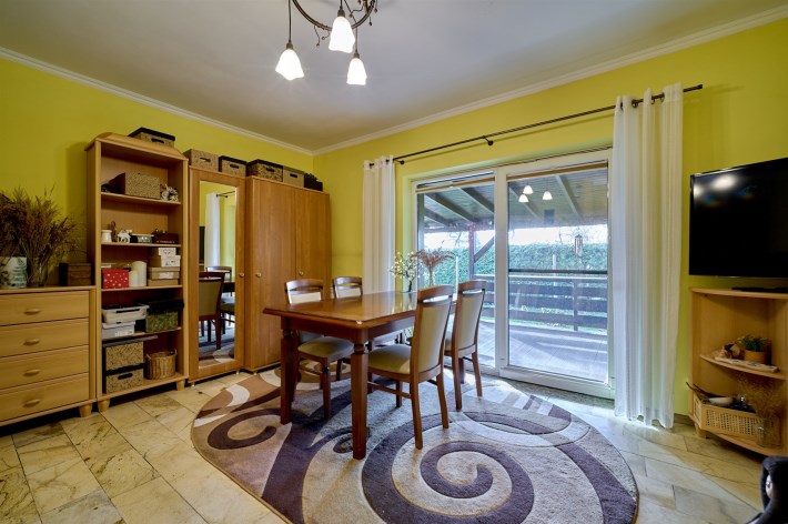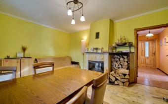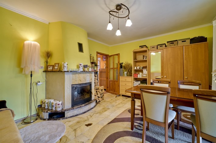 - przytulny pokój dzienny (17,32 m²) z kominkiem z płaszczem wodnym, który ogrzewa cały dom i tworzy wyjątkową atmosferę, z wyjściem na taras,