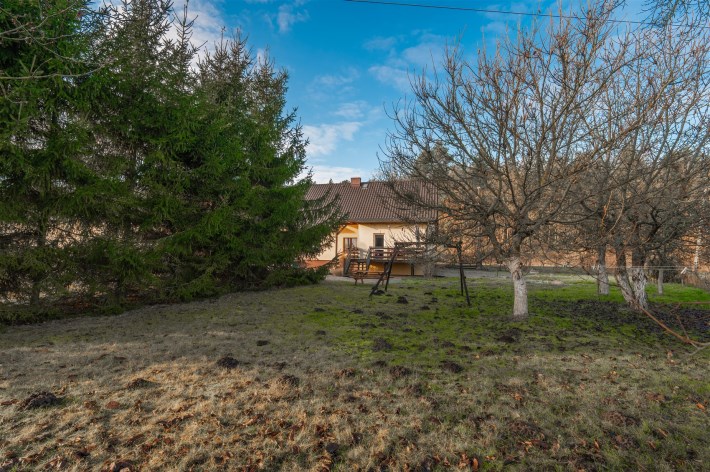 Działka o pow. 6761m2 częściowo ogrodzona siatką metalową, cześciowo drewnianym ogrodzeniem, dwie bramy wjazdowe i furtki. Działka częściowo utwardzona, znajduje się zieleń urządzona oraz drzewka owocowe.