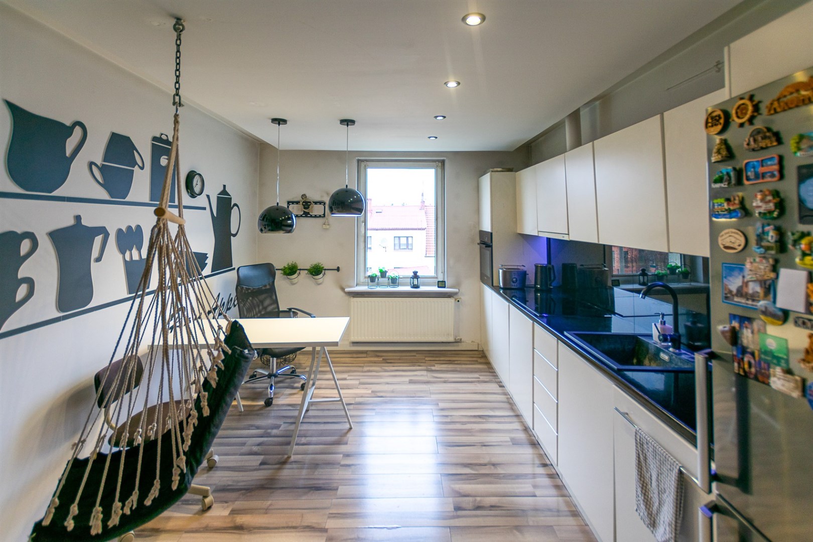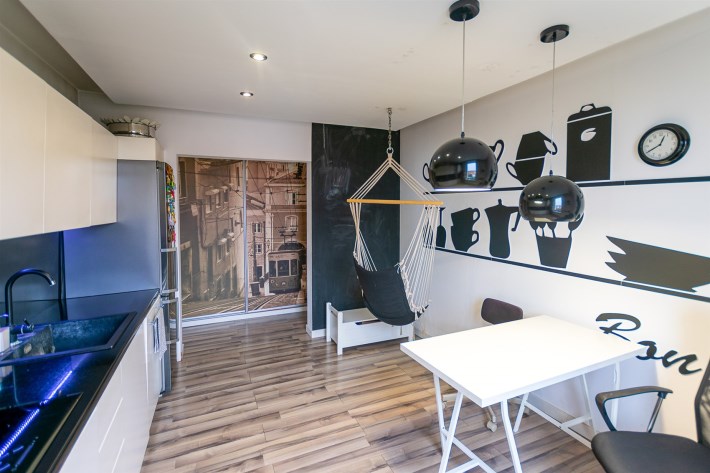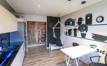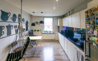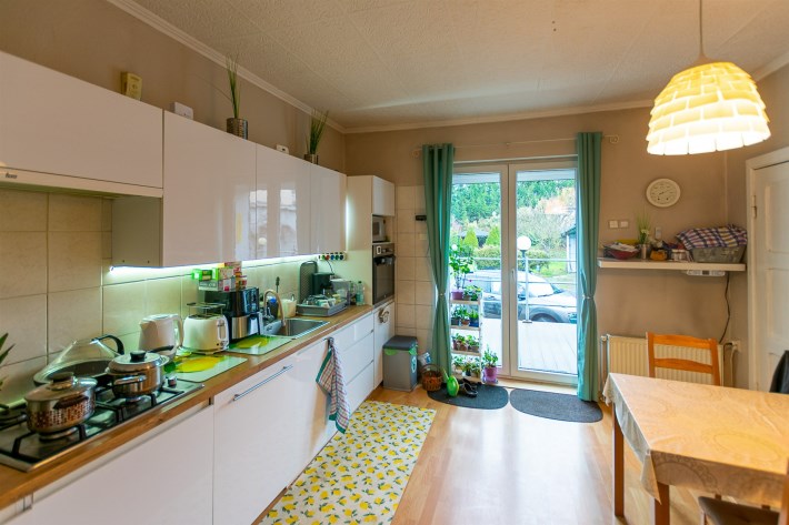 kuchnia - 12,30 m² plus skrytka 2,50 m², z kuchni wyjście na taras i zejście do ogrodu