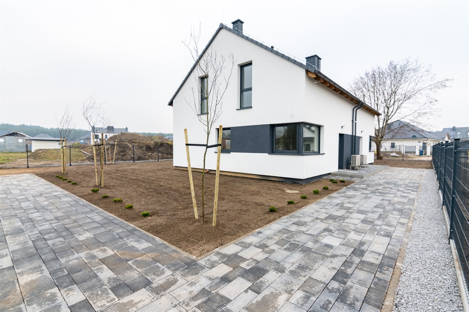Budynek wybudowany z bloczków Ytong, dach pokryty dachówką ceramiczną brass.