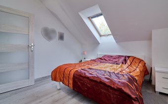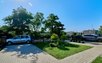 Za budynkiem wolnostojący garaż. W pierwotnym projekcie garaż był w budynku, jednak właściciele na etapie budowy dokonali modyfikacji i w miejscu garażu jest dodatkowy pokój idealnie nadający się na biuro, jeśli ktoś prowadzi własną działalność gospodarczą.