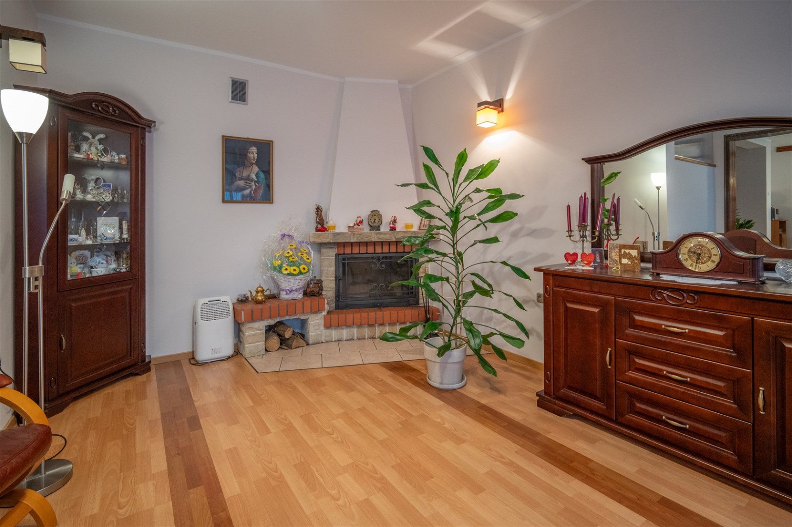 Ogrzewanie własne gazowe oraz kominek w salonie z nawiewem grawitacyjnym