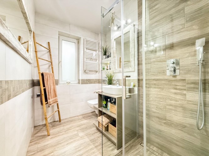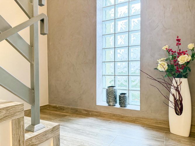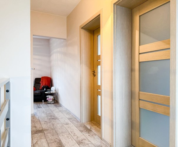 łącznie 4 pokoje, 2 łazienki (wanna + prysznic) i mnóstwo światła dzięki szklanym pustakom na klatce schodowej.
