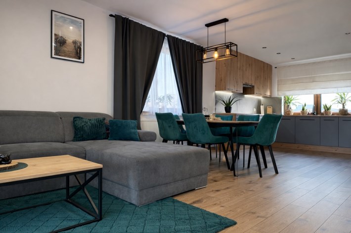 • kuchnia z nowoczesną zabudową – 9,73 m²