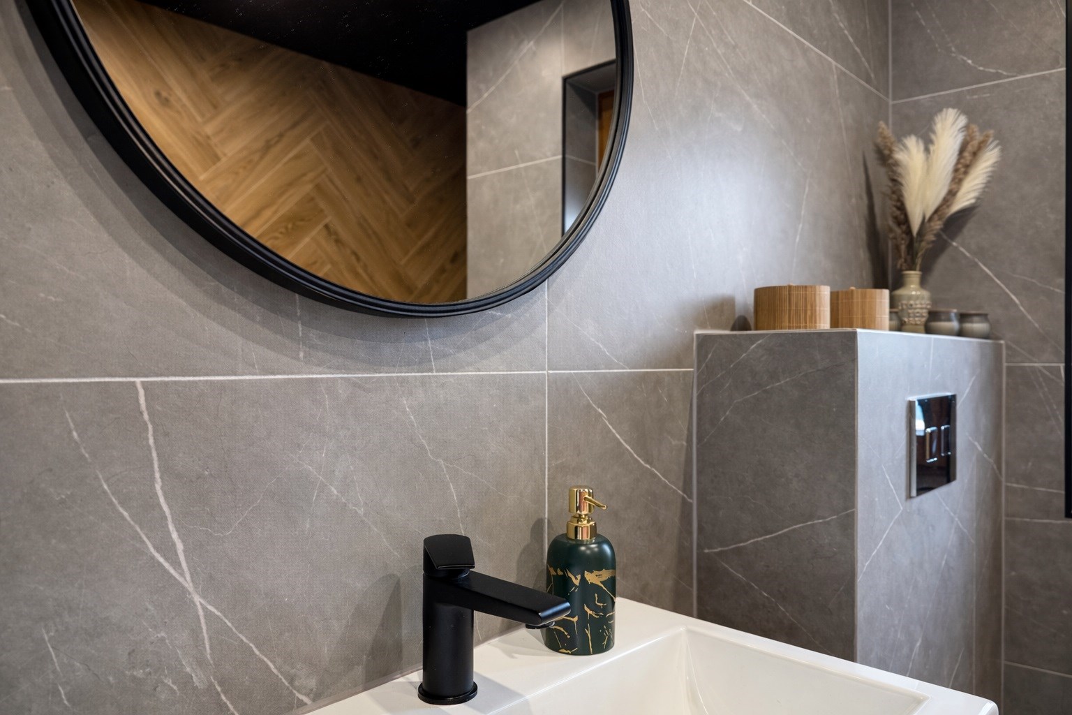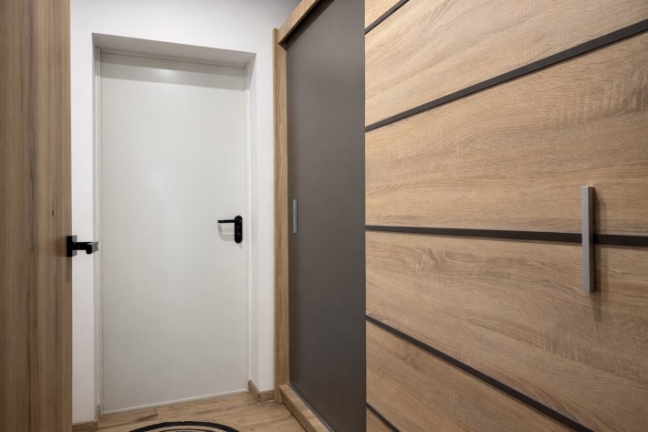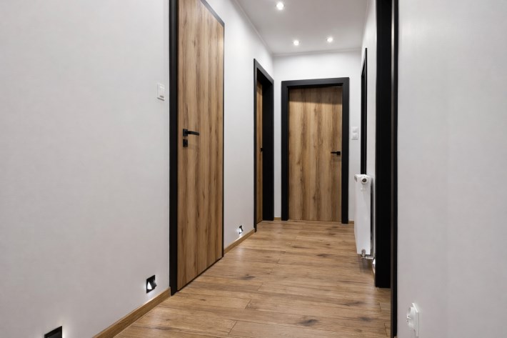 W salonie i sypialniach znajdują się panele podłogowe, w łazience wysokiej jakości kafle oraz ogrzewanie podłogowe..