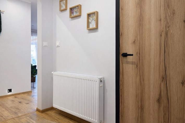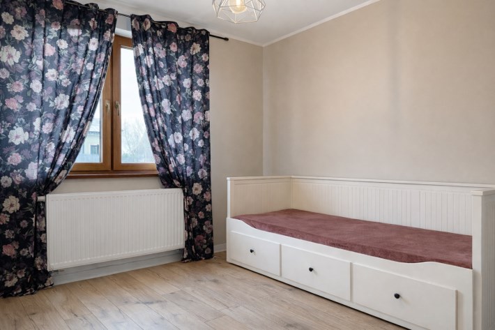 Ogrzewanie centralne wspierają okna trzyszybowe oraz podłogówka w łazience.