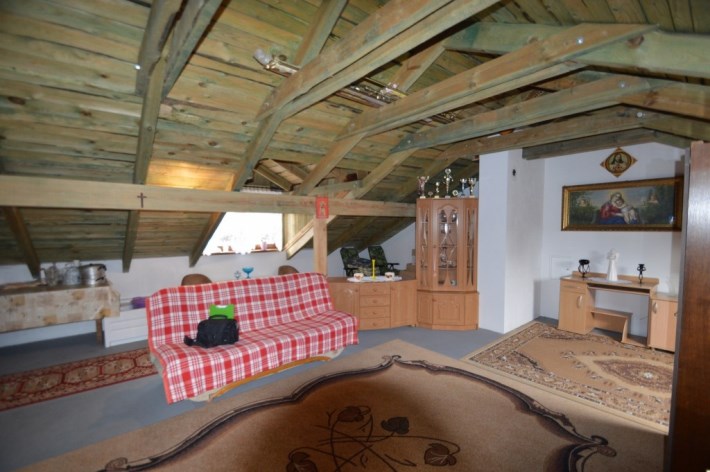 - Wejście na poddasze poprzez solidne, dębowe schody