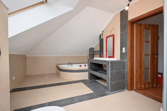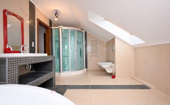 - Łazienka ok. 9 m² z wanną i kabiną prysznicową