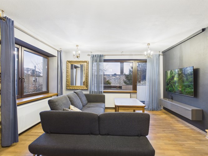 - Salon o pow. 40,3 m2 z wyjściem na taras o pow. 21 m2 oraz balkon o pow. 4,9 m2