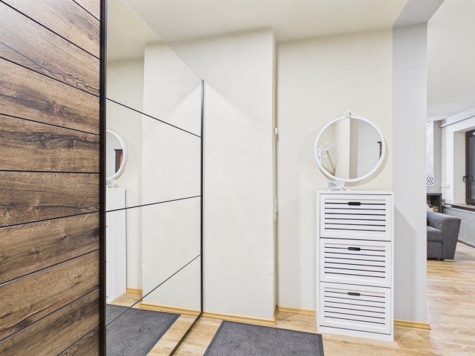 W bryle budynku znajduje się niezależne mieszkanie (ok. 54 m²) z odrębnym wejściem , zaprojektowane bez barier architektonicznych.