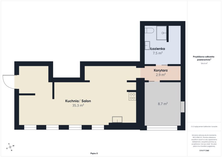 - Salon z aneksem kuchennym o pow. 35,3 m2