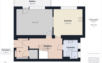 - Pokój o pow. 16,6 m2 z wyjściem na balkon o pow. 4,9 m2