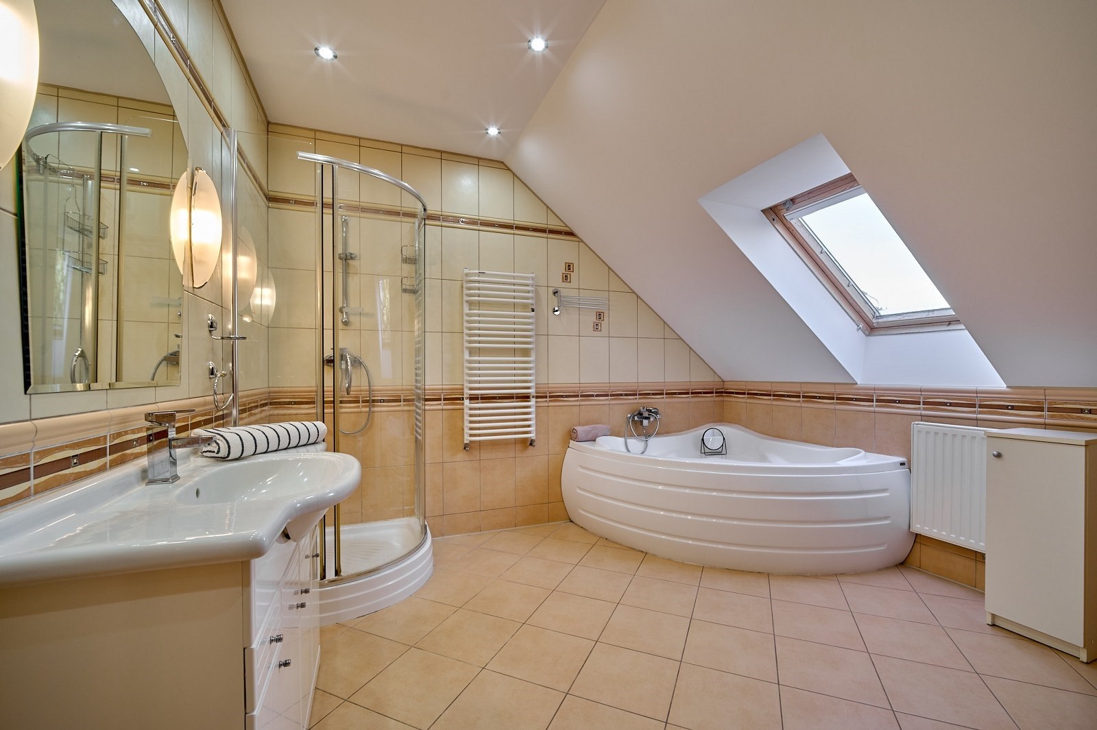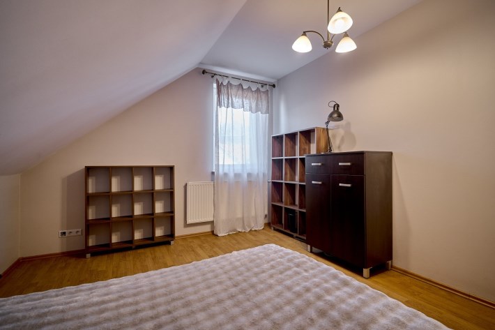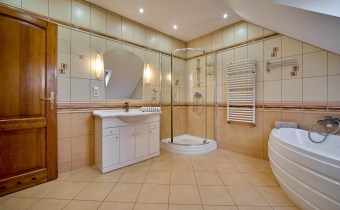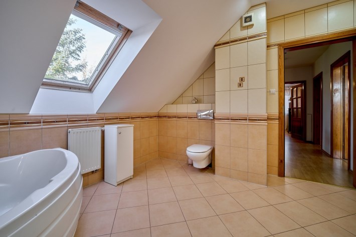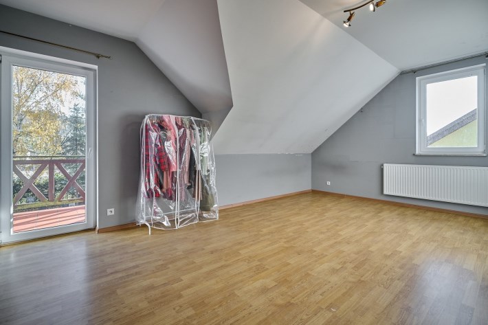 - strefa prywatna na poddaszu — trzy komfortowe sypialnie oraz duża łazienka tworzą idealne miejsce wypoczynku.