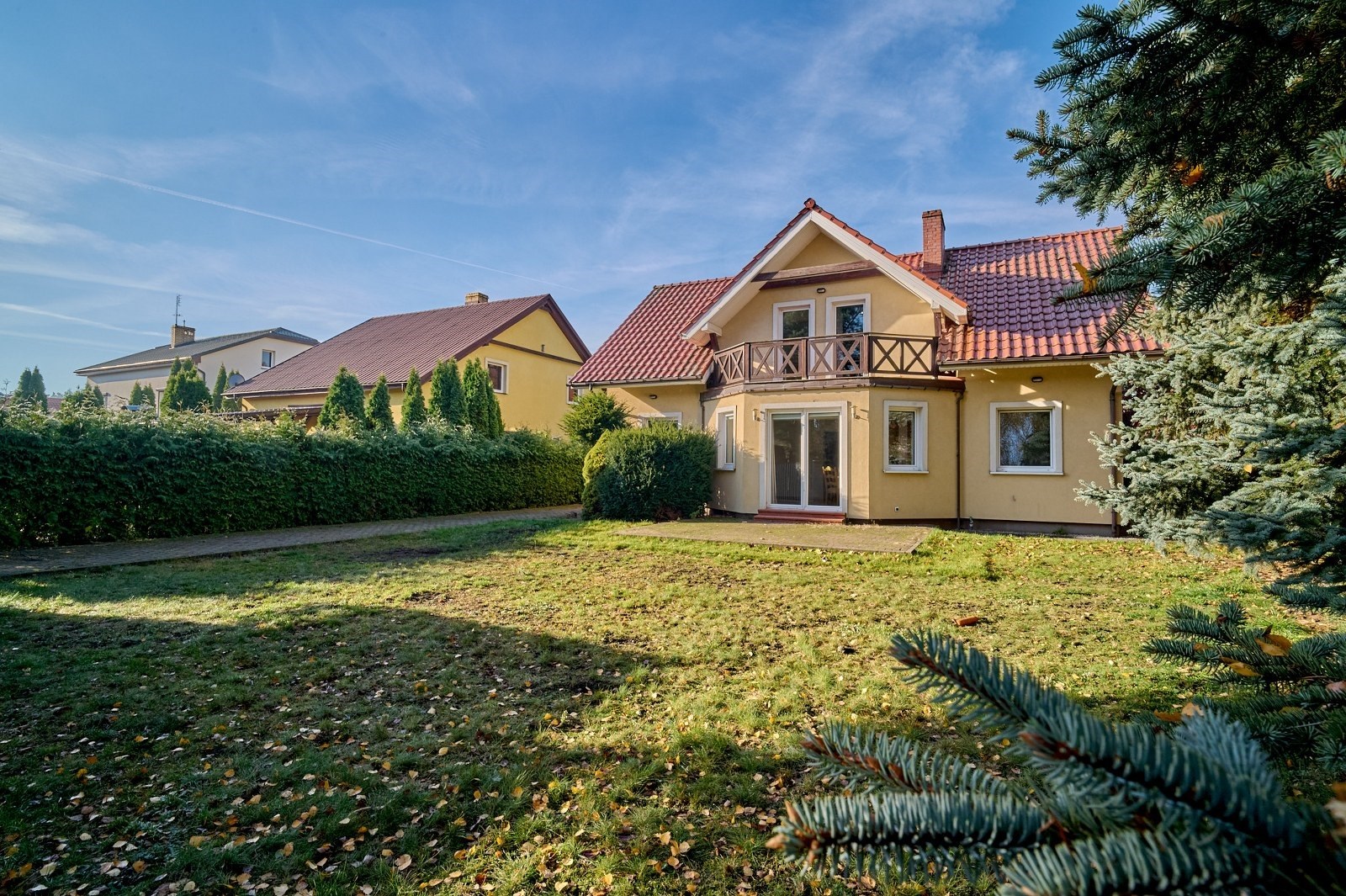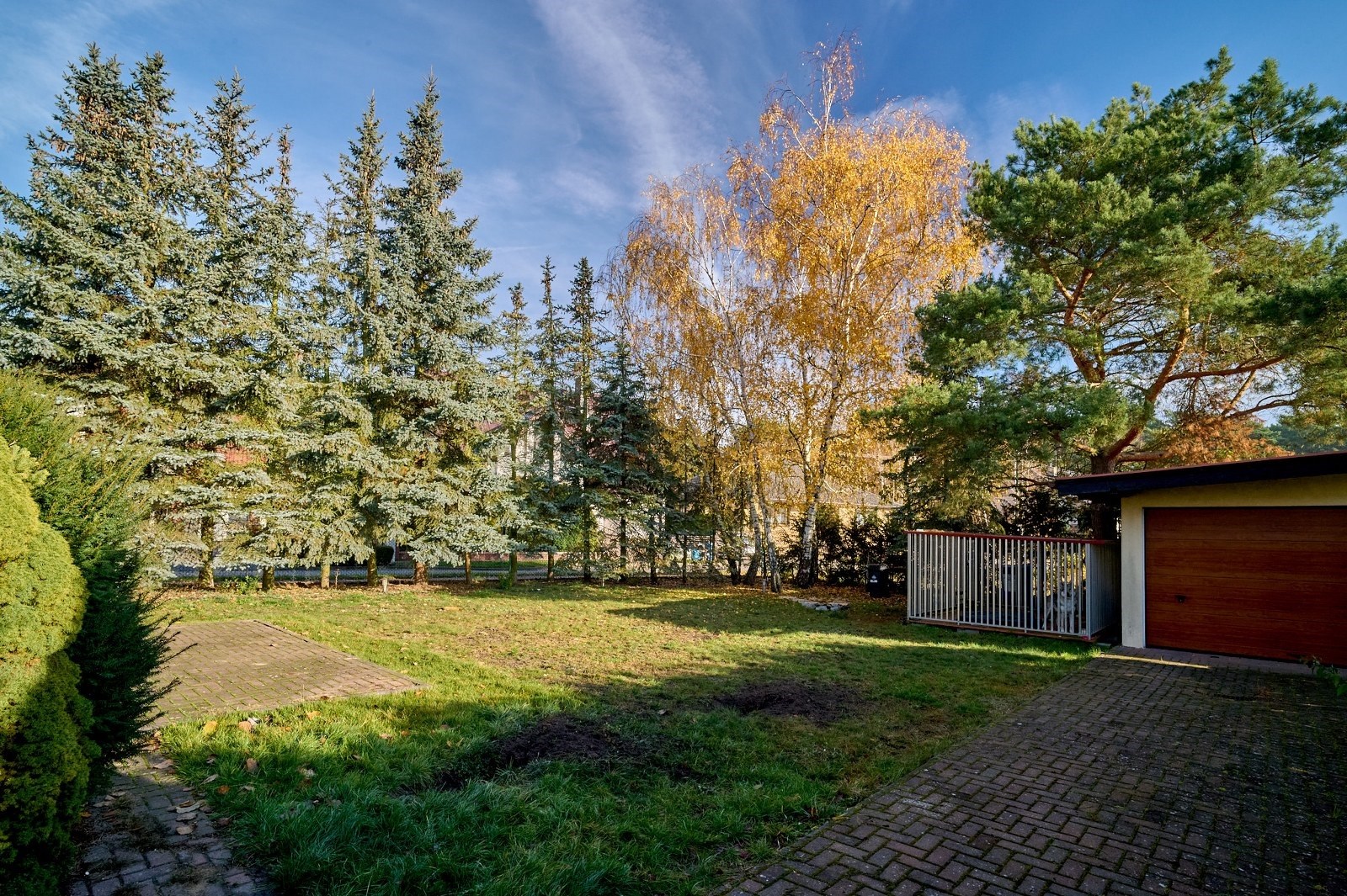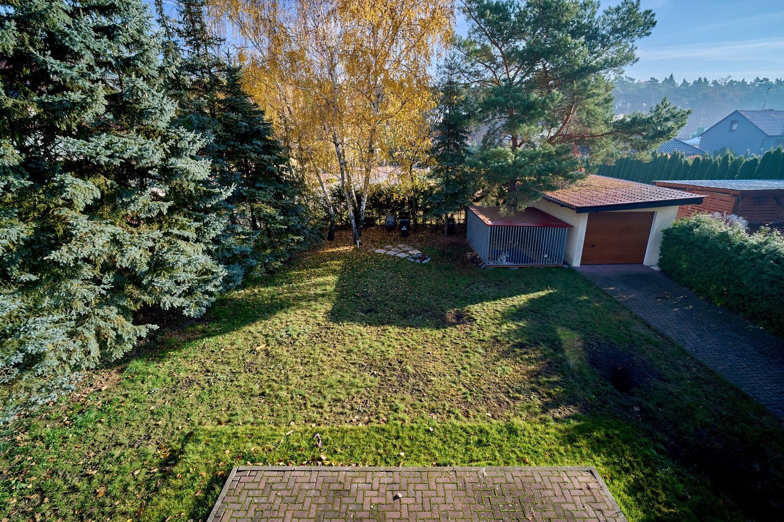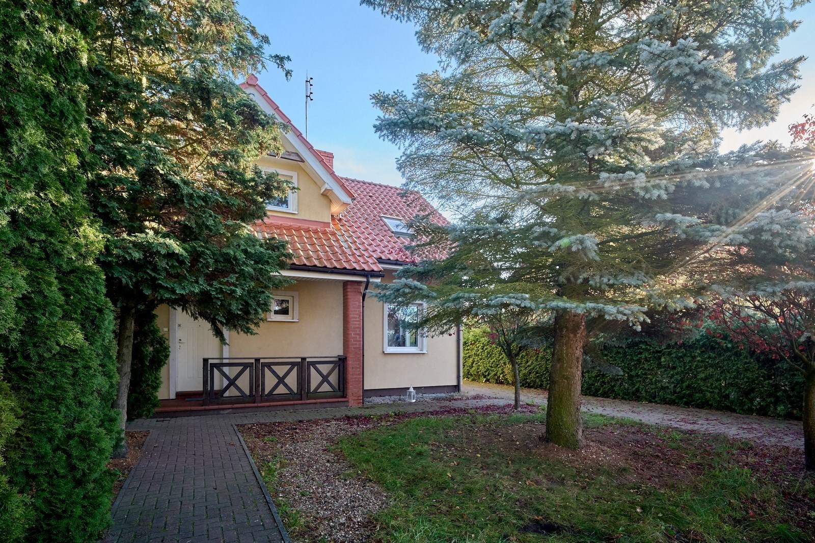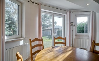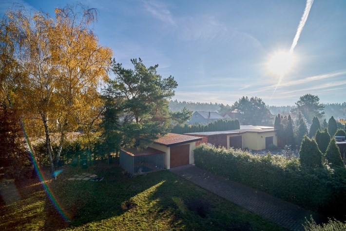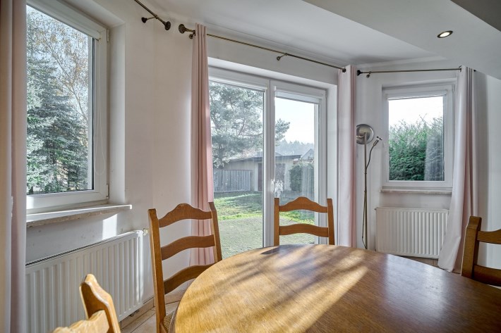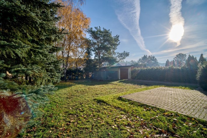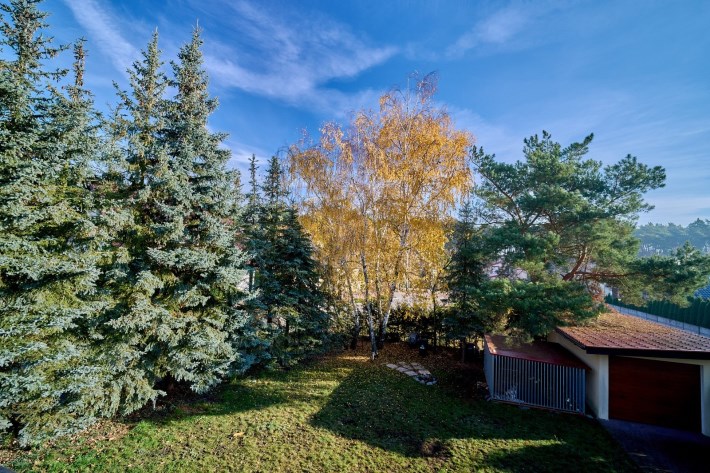 Działka narożnikowa to prawdziwa perełka tej oferty — dojrzałe nasadzenia zapewniają pełną prywatność, wolnostojący garaż daje dodatkowe możliwości, a przygotowane miejsce do relaksu, z wyjściem bezpośrednio z wykuszu salonu, zachęca do odpoczynku praktycznie o każdej porze roku.