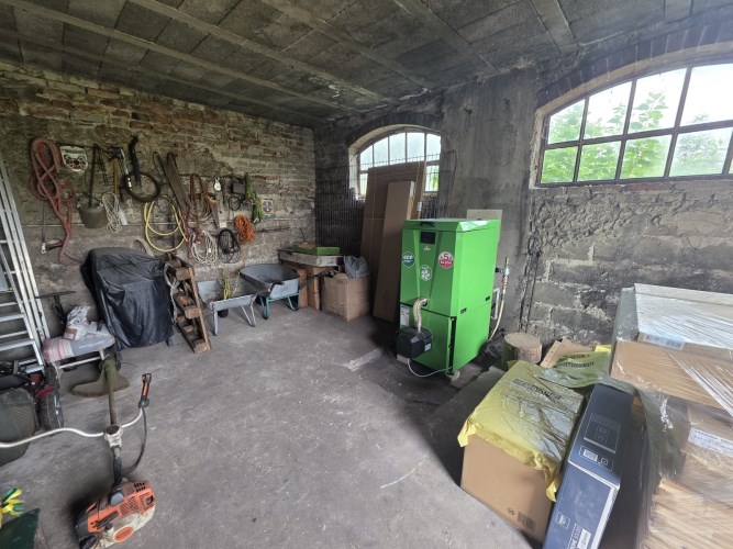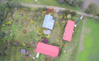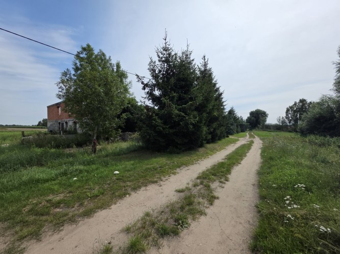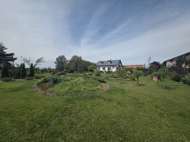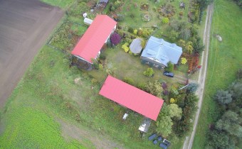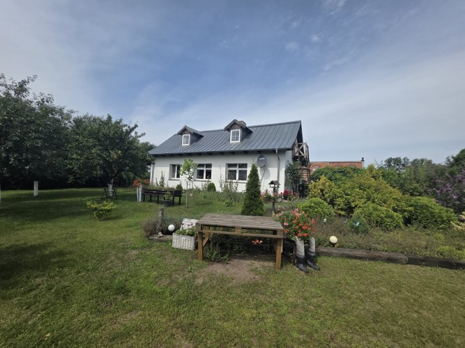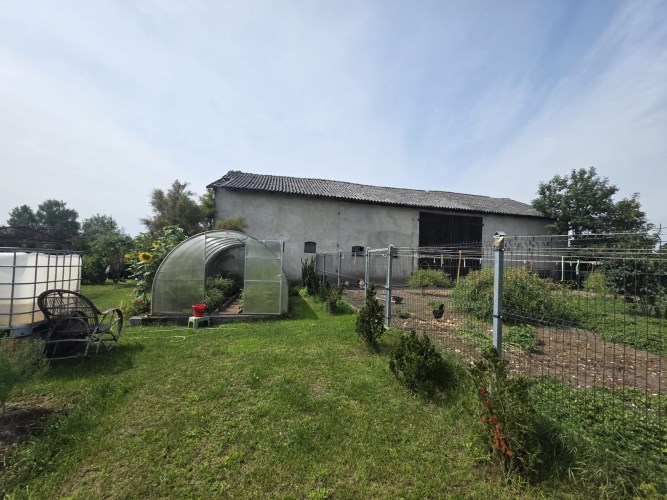 Działka zabudowana jest budynkiem mieszkalnym z 2 mieszkaniami, stodołą (190m2) oraz budynkiem gospodarczym (91m2). Dachy na budynkach gospodarczych wymenione w 2025r. na blachodachówkę.
